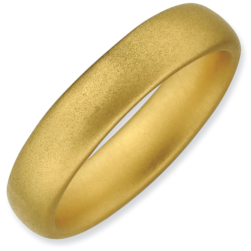 Satin finish yellow gold plated sterling silver ring has a domed profile. Ring width: 4.25mm. Metal weight: 4.34 grams. Available in whole finger sizes only, 5-10. Imported. Part of the Stackable Expressions collection.