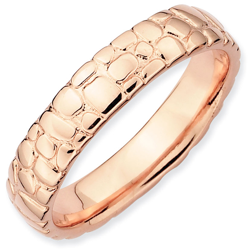 Rock path textured stackable ring is made of 14k rose gold plated sterling silver. Ring width: 4.5mm. Metal weight: 3.9 grams. Available in whole finger sizes only, 5-10. Imported. Part of the Stackable Expressions collection.