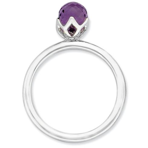 Stackable briolette cut amethyst ring is made of polished sterling silver. Approximate gemstone total weight: 1 carat. Width: 2.25mm. Metal weight: 2.5 grams. Available in whole finger sizes only, 5-10. Imported. Part of the Stackable Expressions collection.