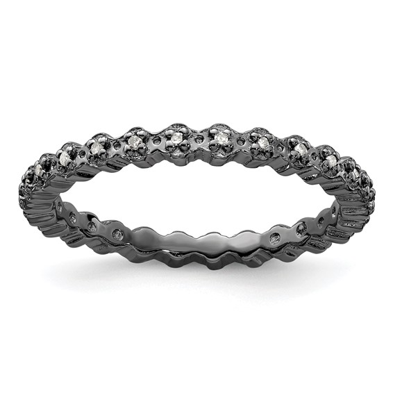 This stackable ring is made of polished, black ruthenium-plated sterling silver. Ring width: 2.25mm. Approximate diamond total weight: 0.08 carats. Metal weight: 2 grams. Available in whole finger sizes only, 5-10. Imported. Part of the Stackable Expressions collection.