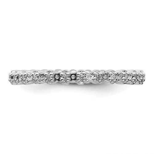 This stackable ring is made of polished sterling silver. Ring width: 2.25mm. Approximate diamond total weight: 0.08 carats. Metal weight: 2 grams. Available in whole finger sizes only, 5-10. Imported. Part of the Stackable Expressions collection.