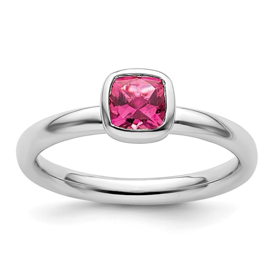 Stackable sterling silver ring has a pink tourmaline in a bezel setting. Approximate gemstone total weight: 0.57 carats. Metal weight: 2.9 grams. Available in whole finger sizes only, 5-10. Import. Part of the Stackable Expressions collection.