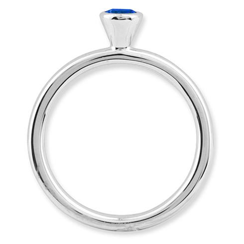 Polished sterling silver stackable ring features a round created sapphire in a high profile bezel setting. Approximate gemstone total weight: 0.32 carats. Created blue sapphire is 4.0mm in diameter. Metal weight: 2.77 grams. Available in whole finger sizes only, 5-10. Imported. Part of the Stackable Expressions collection.