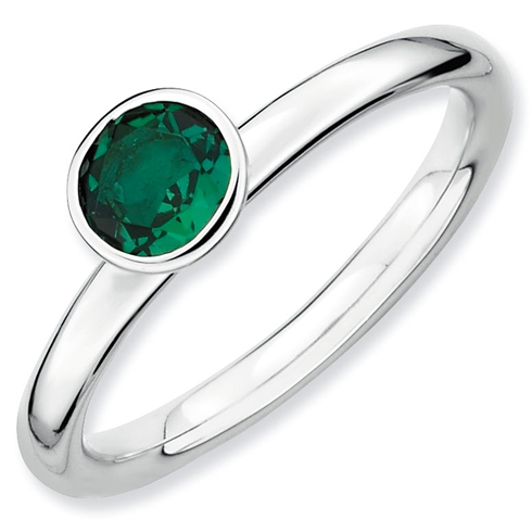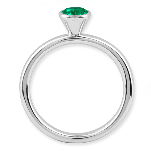 5mm created emerald stackable ring has a high profile bezel setting and is made of polished sterling silver. Approximate gemstone total weight: 0.47 carats. Metal weight: 2.95 grams. Available in whole finger sizes only, 5-10. Imported. Part of the Stackable Expressions collection.