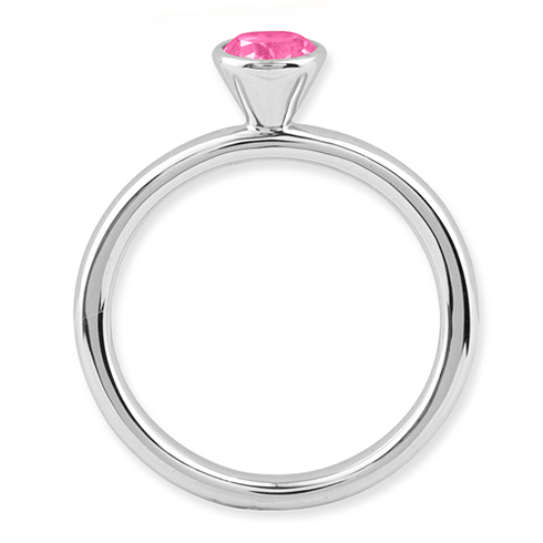 Polished sterling silver stackable ring features a 5mm round pink tourmaline in a high profile bezel setting. Approximate gemstone total weight: 0.49 carats. Metal weight: 2.95 grams. Available in whole finger sizes only, 5-10. Import. Part of the Stackable Expressions collection.