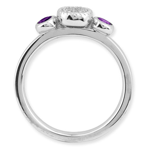Polished sterling silver stackable ring has two round amethysts and a cluster of diamond accents. Approx. diamond and gemstone total weight: 0.05 and 0.3 carats respectively. Ring width: 2.25mm. Metal weight: 3.45 grams. Available in whole finger sizes only, 5-10. Imported. Part of the Stackable Expressions collection.