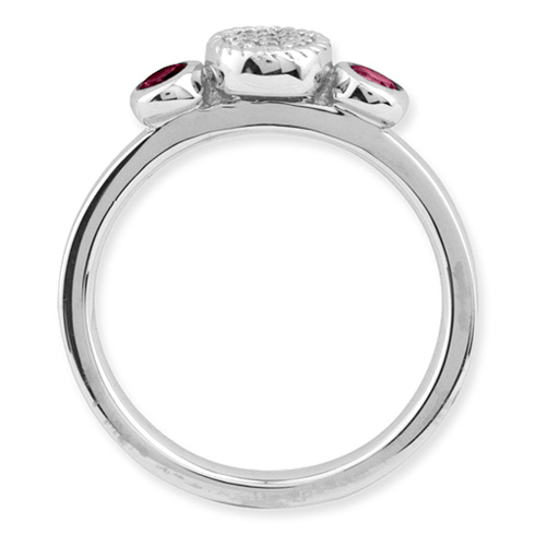 Polished sterling silver. Approximate diamond and created ruby total weight: 0.05 and 0.32 carats respectively. Metal weight: 3.45 grams. Available in whole finger sizes only, 5-10. Imported. Part of the Stackable Expressions collection.