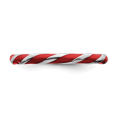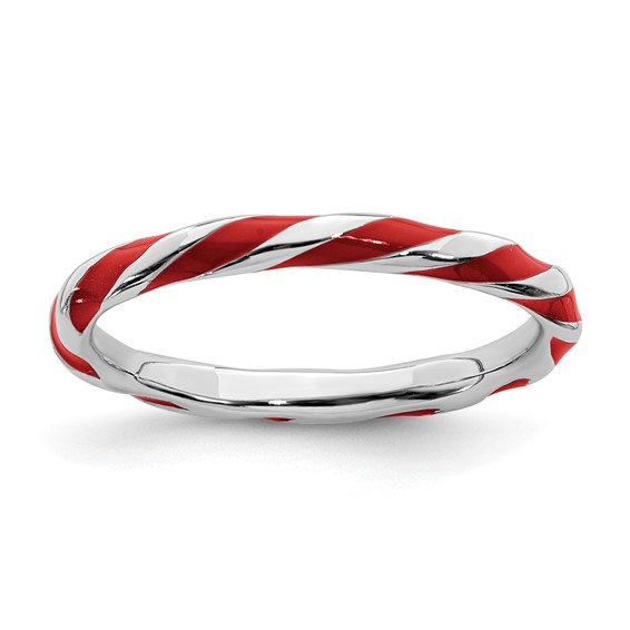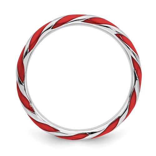 Twisted red enamel stackable ring is made of polished sterling silver. Width: 2.4mm. Metal weight: 1.85 grams. Available in whole finger sizes only, 5-10. Imported. Part of the Stackable Expressions collection.