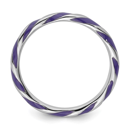 Twisted purple enamel stackable ring is made of polished sterling silver. Width: 2.4mm. Metal weight: 1.85 grams. Available in whole finger sizes only, 5-10. Imported. Part of the Stackable Expressions collection.