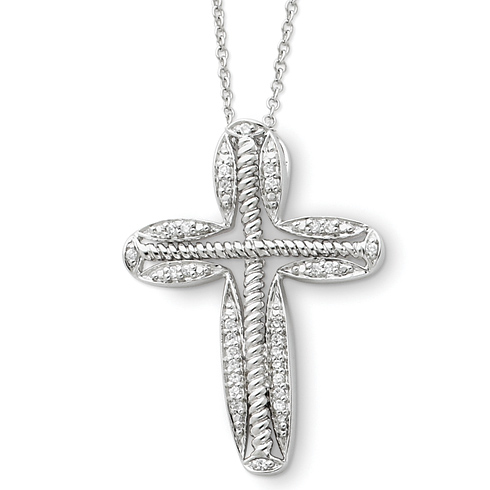 CZ message of the cross necklace in polished sterling silver. Weight: 4.82 grams.Each piece of Sentimental Expressions Jewelry comes pre-packaged in a stylish magnetic gift box, to protect the jewelry that has so much to say. Also included is a poem card with the poem & verse printed in English on one side and Spanish on the other.History: The Message of the Cross Birthstone crossesVerse: For the message of the cross is ...the power of God. -I Corinthians 1:18Message: