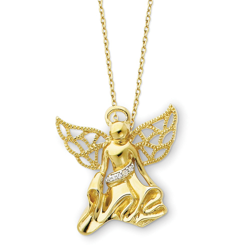 Gold-plated Angel of Gratitude necklace. Weight: 4.94 grams.Each piece of Sentimental Expressions Jewelry comes pre-packaged in a stylish magnetic gift box, to protect the jewelry that has so much to say. Also included is a poem card with the poem & verse printed in English on one side and Spanish on the other.History: Angel of Graditude This angel is dedicated to those with a grateful heart. They are the ones who know that sharing what they have only doubles their joy. Their gratitude keeps them looking at life no matter what it brings with a thankful heart. They are grateful even when the day grows dark knowing the dawn is just ahead. A grateful heart has discovered the true meaning to happiness in life. Verse: For I have learned how to be content with whatever I have. I know how to live on almost nothing or with everything. I have learned the secret of living in every situation, whether it is with a full stomach or empty, with plenty or little. -Philippians 4:12Message: "As each day comes to us refreshed and anew, so does my gratitude renew itself daily. The breaking of the sun over the horizon is my grateful heart dawning upon a blessed world." -Adabella Radici