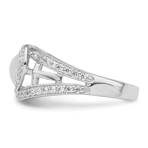 Pure heart ring is made of polished sterling silver and cubic zirconia accents. Available in sizes 7 or 8. Designed by Deborah Birdoes. Weight: 2.7 grams.Each piece of Sentimental Expressions Jewelry comes pre-packaged in a stylish magnetic gift box, to protect the jewelry that has so much to say. Also included is a poem card with the poem & verse printed in English on one side and Spanish on the other.History: Pure HeartVerse: Fire tests the purity of silver and gold, but the Lord tests the heart. -Proverbs 17:3 Create in me a clean heart, O God. Renew a loyal spirit within me. -Psalm 51:10Message: This ring is to be worn for those that desire to walk in purity and have given their heart to the Lord. It is a daily reminder to follow the cross in their journey of life with full confidence that God is faithful to carry out what He has promised. By turning to Him and trusting Him daily He will guard and keep your heart pure.