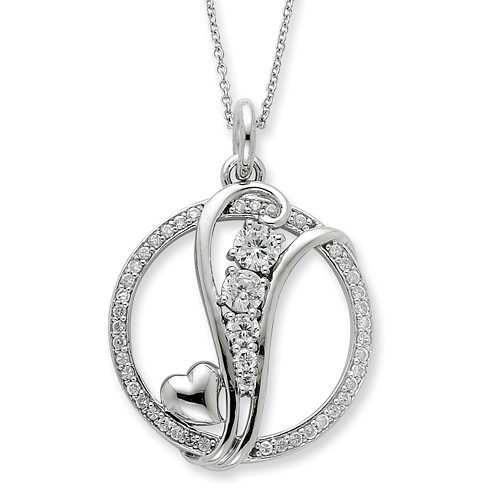 Journey of promise necklace has a small heart charm and a row of graduated cubic zirconia stones. Polished sterling silver. Pendant size: 1in x 1in. Sterling silver 18in chain has a spring ring clasp. Weight: 9.18 grams.Each piece of Sentimental Expressions Jewelry comes pre-packaged in a stylish magnetic gift box, to protect the jewelry that has so much to say. Also included is a poem card with the poem & verse printed in English on one side and Spanish on the other.History: Journey of Promise I had no idea that when we met I could love the way I do. It must have been inside of me Just waiting to meet you. Each day brings us closer To a path with an open door, To a journey with this promise Someday I'll be yours. So with this heart I pledge With my soul to guarantee, I want to spend all my life Knowing you'll be with me. ©Deborah J Birdoes May 7,2008Verse: Love never fails. 1 Corinthians 13:8Message: