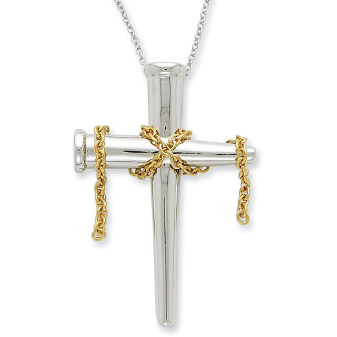 Gold-plated It Is Finished 18in necklace in polished sterling silver. Weight: 8.47 grams.Each piece of Sentimental Expressions Jewelry comes pre-packaged in a stylish magnetic gift box, to protect the jewelry that has so much to say. Also included is a poem card with the poem & verse printed in English on one side and Spanish on the other.History: It Is Finished Jesus lifted up His voice, "It is finished", as He cried. "Forgive them, everyone." Then willingly He died. The task of redemption finished, To open up heaven's door. He triumphed at the cross To offer us so much more. The cross and all it stands for Throughout time shall remain. The greatest victory for me Because Heaven's now my gain. Deborah J. Birdoes 12-13-2009Verse: When he had received the drink, Jesus said, "It is finished." With that, he bowed his head and gave up his spirit. John 19:30Message: