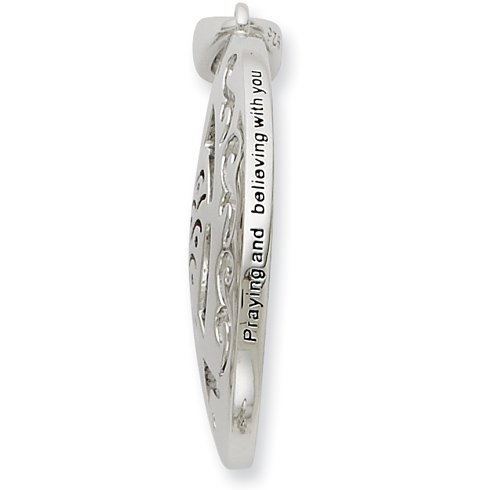 Praying and believing with you necklace is oval shaped and made of polished sterling silver. Item size: 1in x 3/4in. Sterling silver 18in chain has a spring ring clasp. Weight: 6.3 grams.Each piece of Sentimental Expressions Jewelry comes pre-packaged in a stylish magnetic gift box, to protect the jewelry that has so much to say. Also included is a poem card with the poem & verse printed in English on one side and Spanish on the other.History: Praying and believing with you! Just wanted you to know I am walking along side of you in prayer believing for what you are praying for. The Lord is listening closely to both of us. Stay strong. Your answer is on its way!Verse: Message: