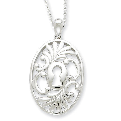 The oval necklace has a keyhole design and is made of polished sterling silver. Side inscription: Believe in miracles. Pendant size: 1in x 3/4in. Sterling silver 18in chain has a spring ring clasp. Weight: 5.69 grams.Each piece of Sentimental Expressions Jewelry comes pre-packaged in a stylish magnetic gift box, to protect the jewelry that has so much to say. Also included is a poem card with the poem & verse printed in English on one side and Spanish on the other.Believe in miracles! Miracles happen every day. They are sent from God Who cares about you. The real miracle is our faith. Never stop believing that out of every difficult situation God can always bring possibilities. It is when you plant your dreams in faith that miracles grow.