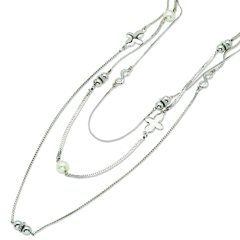 Jacqueline Kennedy simulated pearl necklace is accented by 80 Swarovski crystals. 36in long with fancy lobster clasp. Imported. Part of the Jackie Kennedy collection.Each piece of Camrose & Kross jewelry is guaranteed for life against defects in workmanship. This includes plating chipping or wearing, stones falling out or defective hardware or findings. Watches fall under the same warranty, except for their movements, which are guaranteed for one year.Each piece of jewelry is gift boxed in a velour covered steel case and comes with a Camrose & Kross certificate of authenticity. Also included is a romance card with some fascinating information about Jackie and her life.
