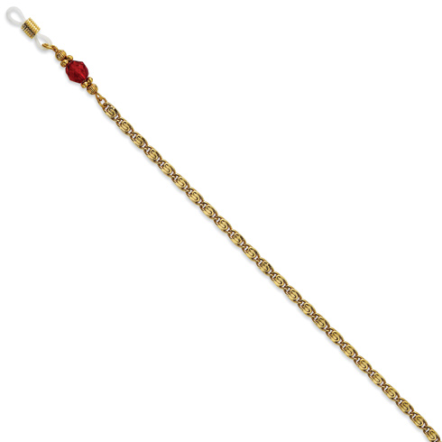 Non metal. 30in Eyewear chain. Stone info: Red Crystal gold-tone. Part of the 1928 jewelry collection.