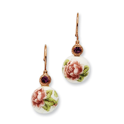 Crystal rose flower decal drop earrings. Polished mixed metal. Stone info: Floral decal, purple Crystal rose-tone. Part of the 1928 jewelry collection.