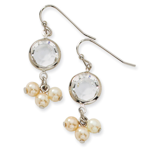 Polished mixed metal. Earrings. Stone info: Cultura glass pearl, crystal. Silver-tone. Part of the 1928 jewelry collection.