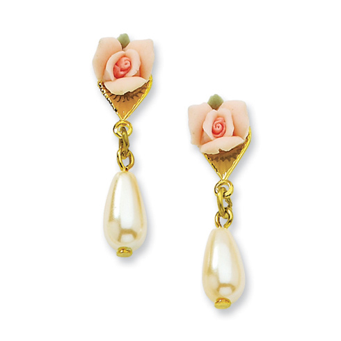 Polished mixed metal. Post earrings. Stone info: Porcelain rose, cultura glass pearl, gold-tone. Part of the 1928 jewelry collection.