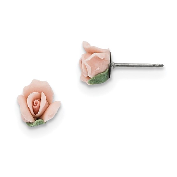 Polished mixed metal. Post earrings. Stone info: Porcelain rose, gold-tone. Fancy lobster clasp. Part of the 1928 jewelry collection.