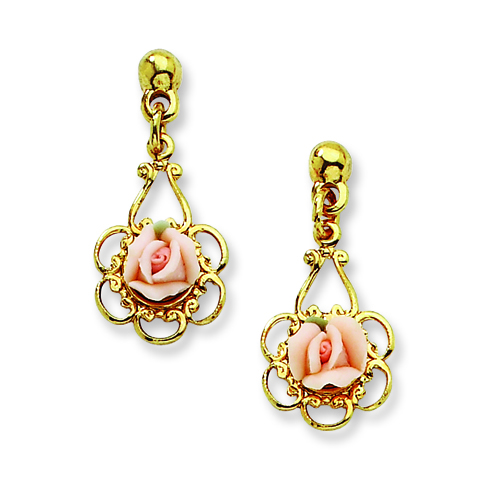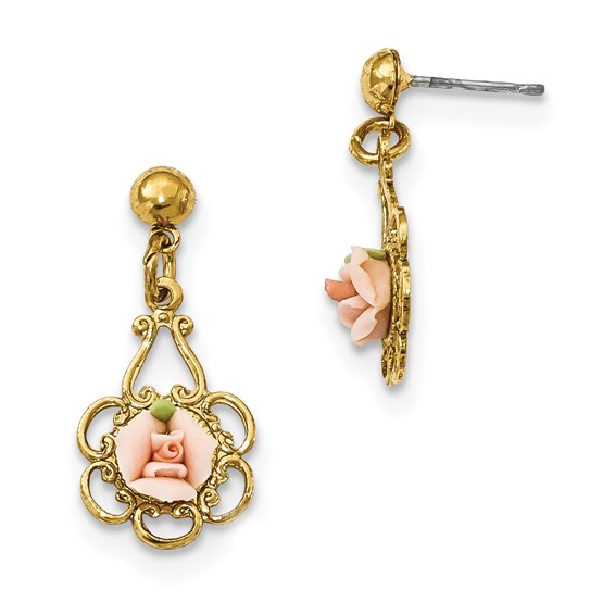 Polished mixed metal. Post earrings. Stone info: Porcelain rose, gold-tone. Part of the 1928 jewelry collection.