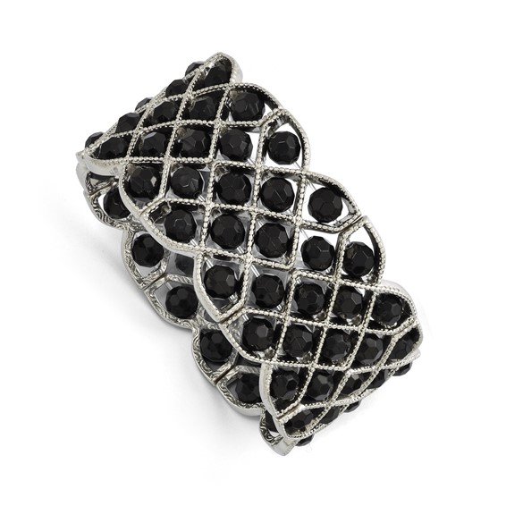 Polished mixed metal. Stretch bracelet. Stone info: Black crystal. Silver-tone. Part of the 1928 jewelry collection.