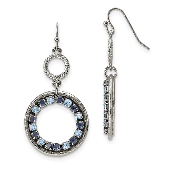 Blue crystal circle drop earrings in polished mixed metal. Earrings. Stone info: Light and dark blue crystal. Silver-tone. Part of the 1928 jewelry collection.