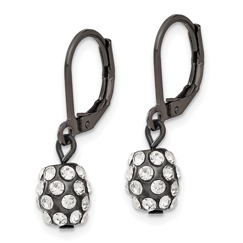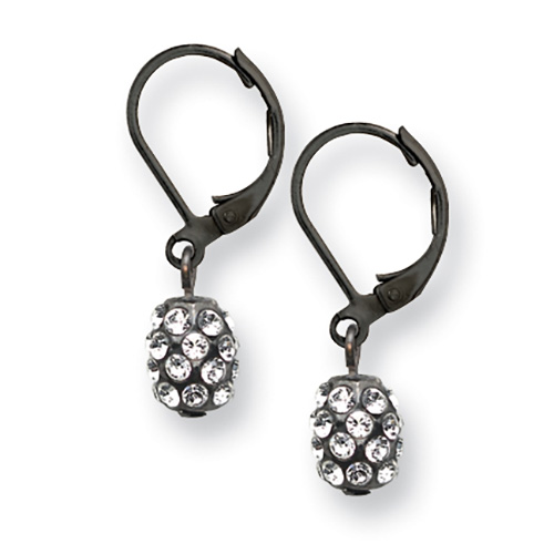 Black-plated mixed metal crystal earrings have lever backs. Part of the 1928 jewelry collection.