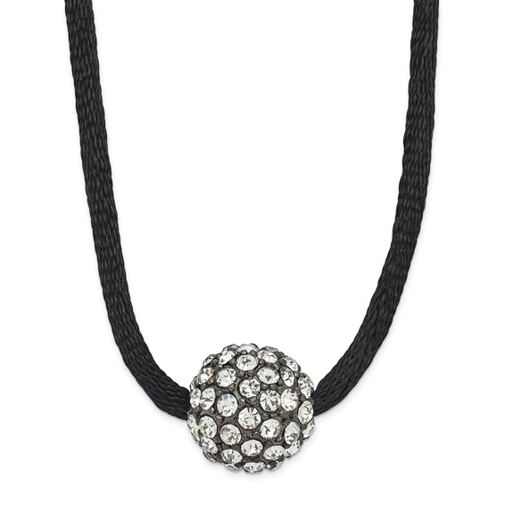 Crystal fireball necklace is made of polished mixed metal. 16in black cord necklace with 3in extension. Fancy lobster clasp. Part of the 1928 jewelry collection.