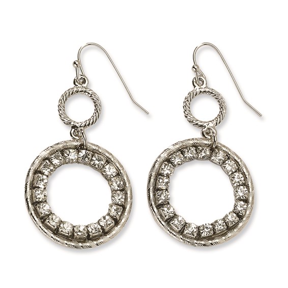 Silver tone crystal hoop drops. Polished mixed metal. Earrings. Stone info: crystal. Silver-tone. Part of the 1928 jewelry collection.