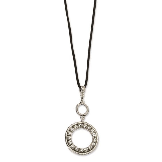 Polished mixed metal. 16in Necklace with 3in extension. Stone info: Crystal satin cord, silver-tone. Fancy lobster clasp. Part of the 1928 jewelry collection.
