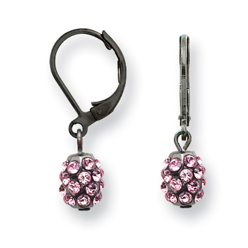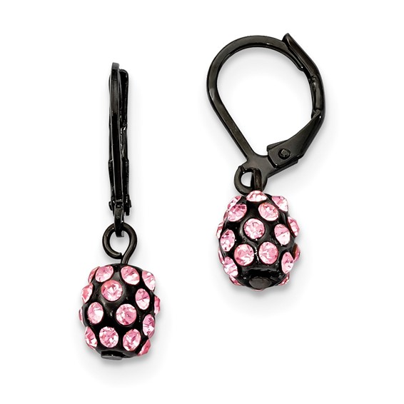 Polished mixed metal. Leverback earrings. Stone info: Pink crystal fireball, black-plated. Part of the 1928 jewelry collection.