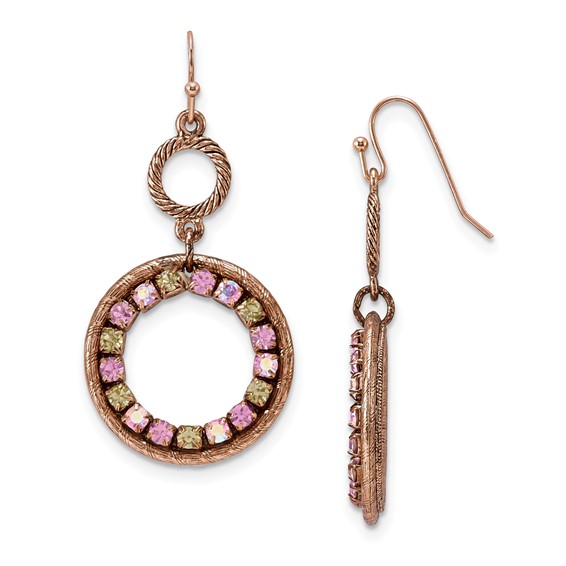 Polished mixed metal. Earrings. Stone info: Purple, pink and colorado Crystal copper-tone. Part of the 1928 jewelry collection.