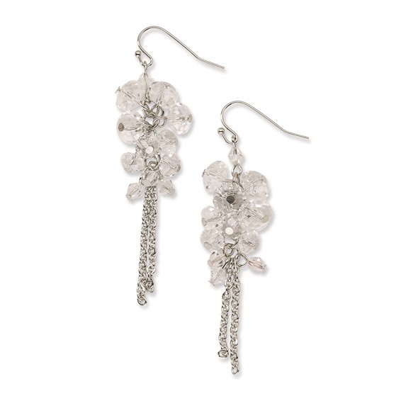 Clear crystal bead clusters in polished mixed metal. Earrings. Stone info: crystal. Silver-tone. Part of the 1928 jewelry collection.