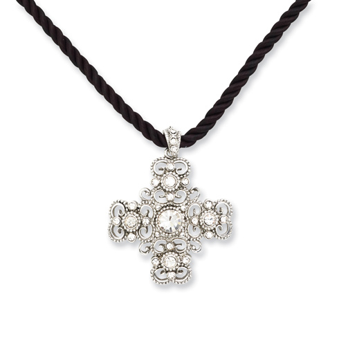 Polished mixed metal. 16in Necklace with 3in extension. Stone info: Crystal satin twist cord, silver-tone. Fancy lobster clasp. Part of the 1928 jewelry collection.