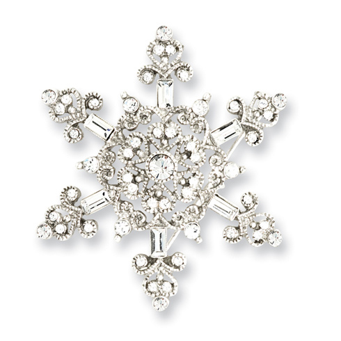 Polished mixed metal. Pin. Stone info: crystal. Silver-tone. Part of the 1928 jewelry collection.