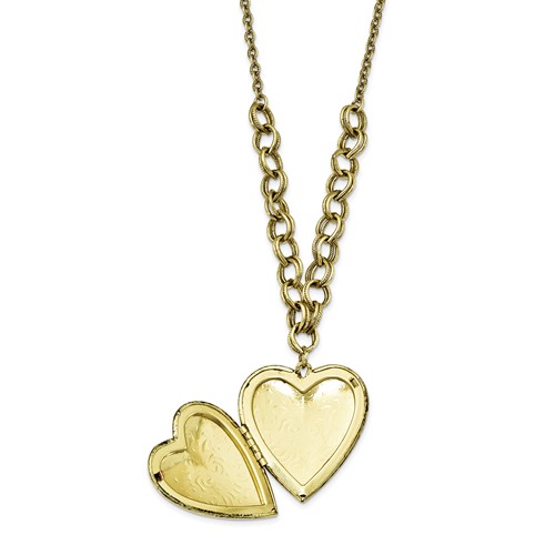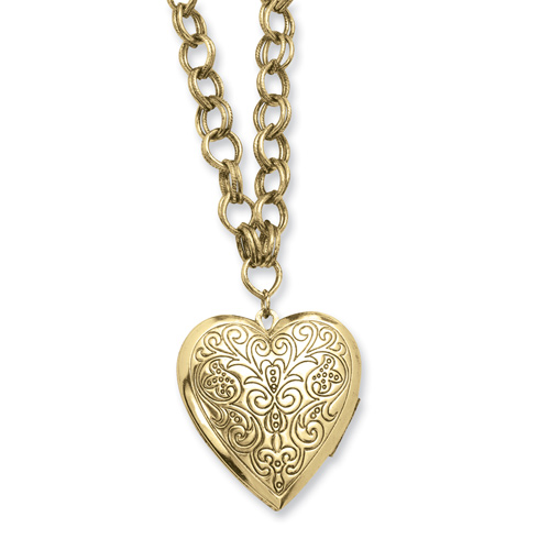 Polished mixed metal. 28in Locket necklace. The locket holds two photos. Fancy lobster clasp. Part of the 1928 jewelry collection.