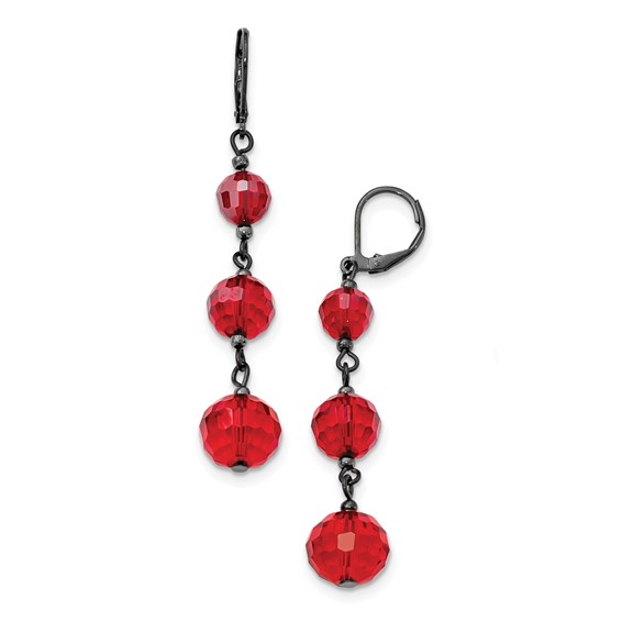 Polished mixed metal. Leverback earrings. Stone info: Red Crystal black-plated. Part of the 1928 jewelry collection.