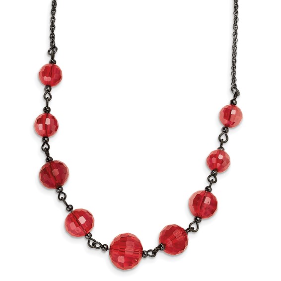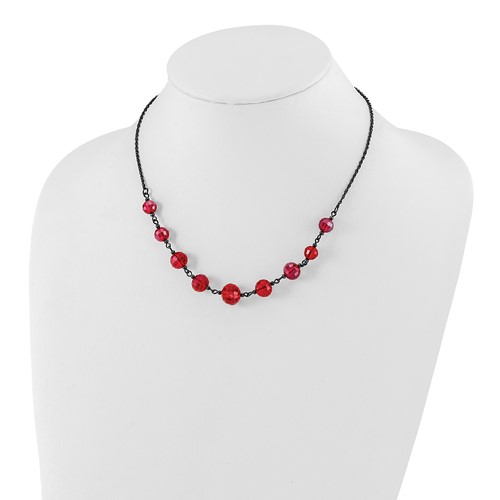 Polished mixed metal. 16in Necklace with 3in extension. Stone info: Red Crystal black-plated. Fancy lobster clasp. Part of the 1928 jewelry collection.