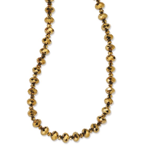 Polished mixed metal. 16in Necklace with 3in extension. Stone info: Light colorado and brown Crystal brass-tone. Fancy lobster clasp. Part of the 1928 jewelry collection.