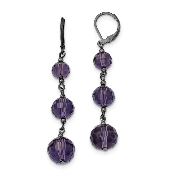 Polished mixed metal. Leverback earrings. Stone info: Smokey purple Crystal black-plated. Part of the 1928 jewelry collection.