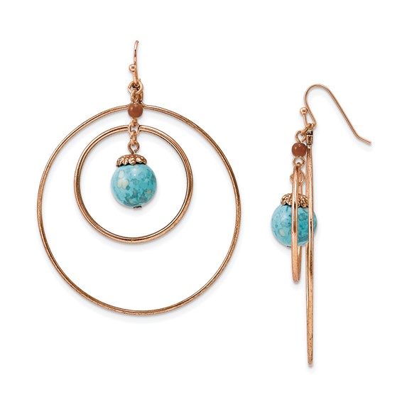 Multi orbit hoops in polished mixed metal. Earrings. Stone info: Aqua and brown beads, copper-tone. Part of the 1928 jewelry collection.