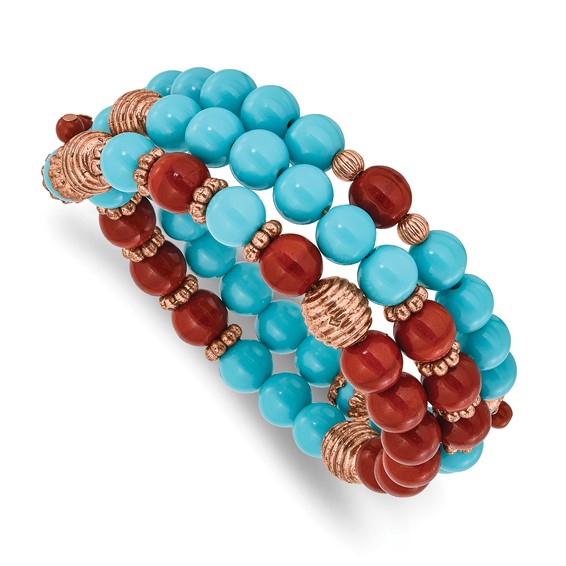 Polished mixed metal. Wrap bracelet. Stone info: Aqua and brown beads, copper-tone. Part of the 1928 jewelry collection.