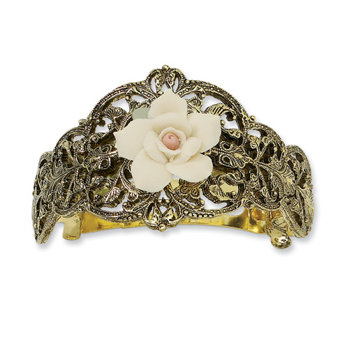 Polished mixed metal. Ponytail holder. Stone info: Procelain rose, gold-tone. Part of the 1928 jewelry collection.