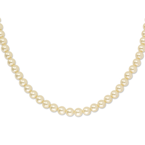Polished mixed metal. 18in Necklace. Cultura glass pearl, gold-tone. Fancy lobster clasp. Part of the 1928 jewelry collection.
