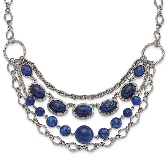 Polished mixed metal. 16in necklace with 3in extension. Stone info: Blue bead, silver-tone. Fancy lobster clasp. Part of the 1928 jewelry collection.