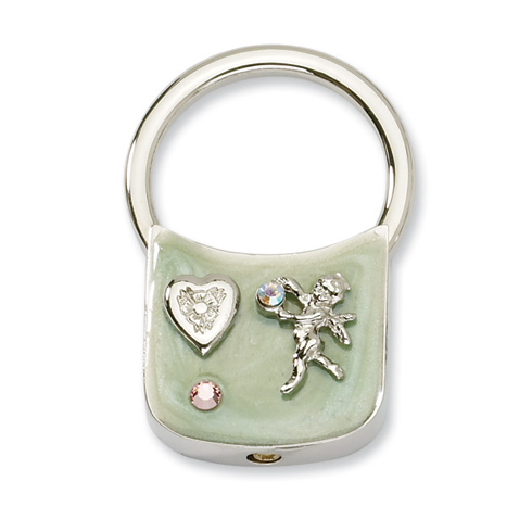 Non metal. Key Fob. Stone info: Light green enamel, crystal. Silver-tone. Part of the 1928 jewelry collection.