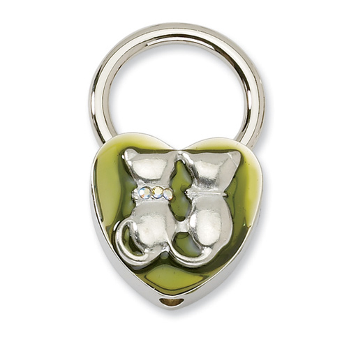 Non metal. Key Fob. Stone info: Olive enamel, crystal. Silver-tone. Part of the 1928 jewelry collection.